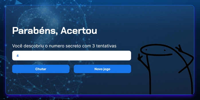 Um jogo interativo desenvolvido em HTML, CSS e JavaScript, onde o jogador deve adivinhar um número aleatório dentro de um intervalo específico. Ele tambem interage com uma API de sistema de voz. Metodos como parseInt Math.random() para gerar números aleatorios, Arrays, setAttribute para funcionalidades.