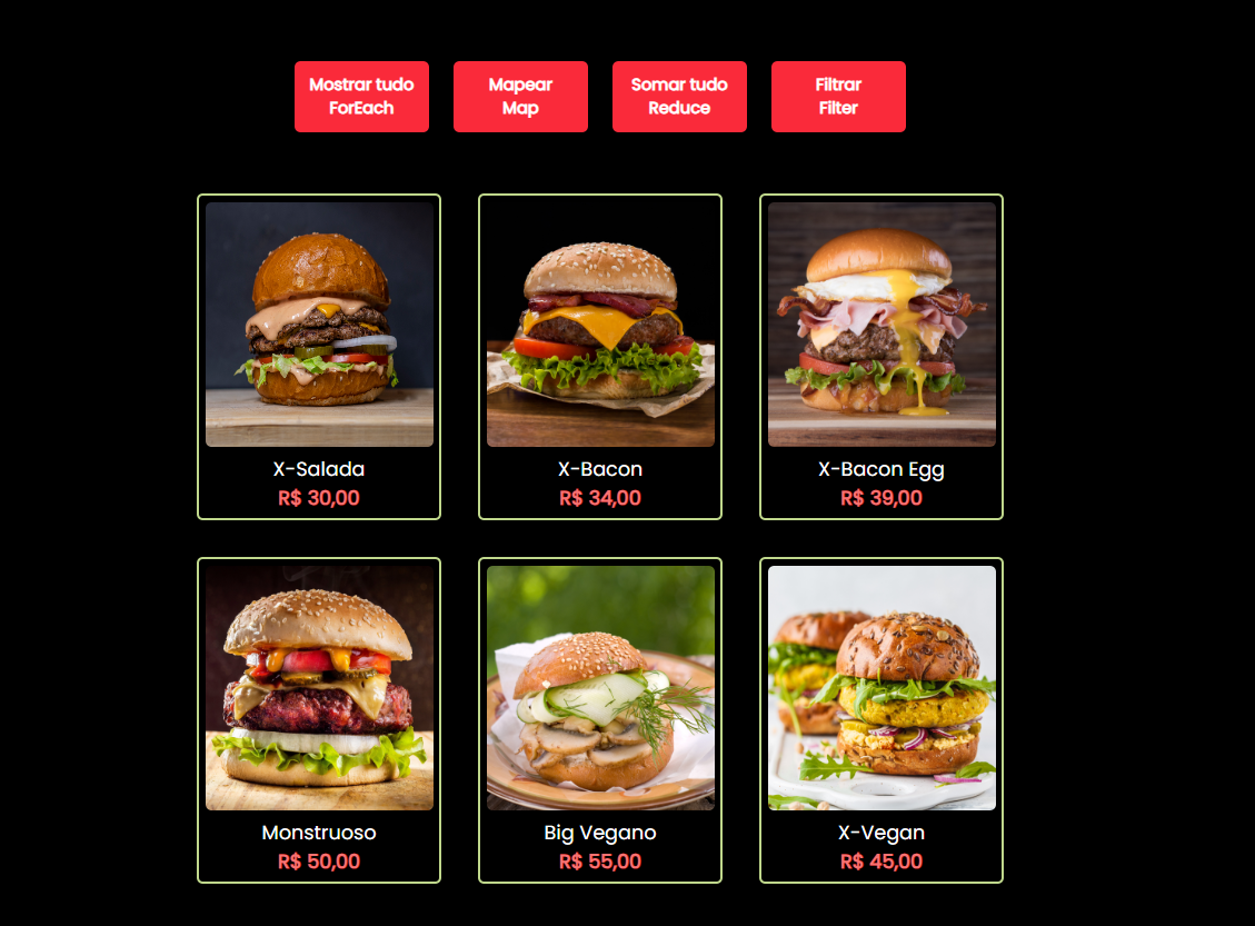 Projeto de Listagem de Produtos, que utiliza JavaScript para manipular uma lista de produtos. Possui as seguintes funcionalidades: ForEach -> Exibir a lista completa de produtos, Map -> Aplicar um desconto de 10% em todos os produtos, Reduce -> Calcular o valor total de todos os itens da lista e Filter -> Filtrar somente os produtos veganos